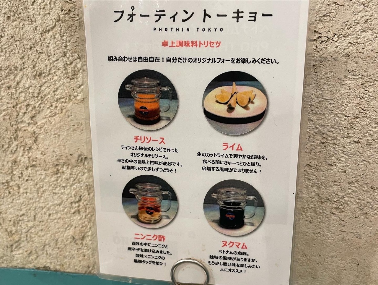 あっさり優しい味のスープでした。最後までそのまま食べるには物足りない感じ。各テーブルに卓上調味料あり、それぞれ試してみました。ライムは店員さんに言うといただけます。