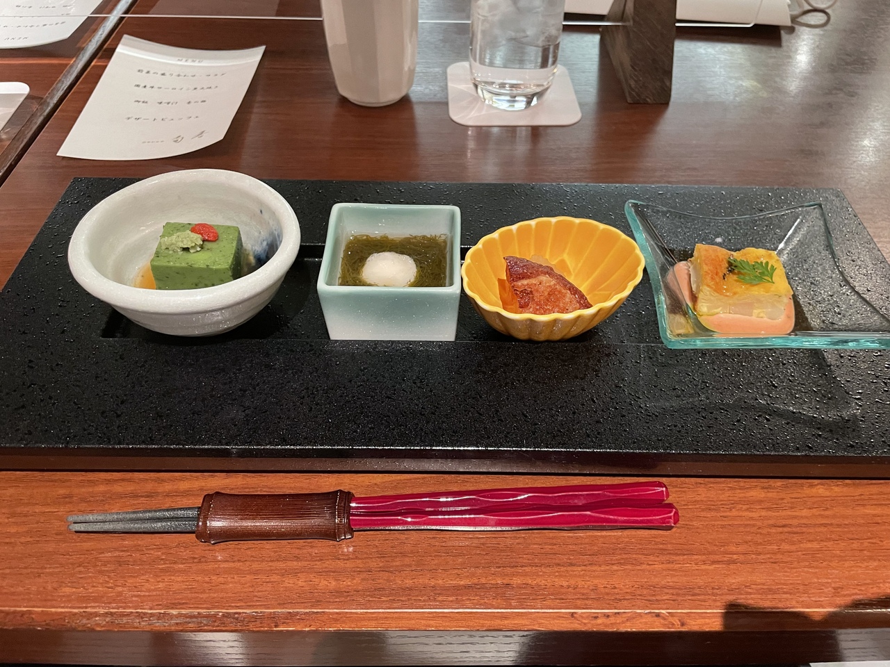 よもぎ豆腐、もずく、蓮根さつま揚げ、フリッタータ