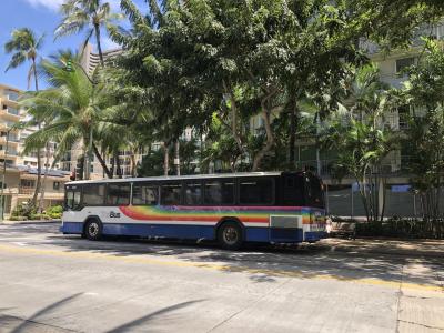 The BusのHOLOカードをABC Storeで$2で購入し、1日券$5.5でアラモアナから64番バスに乗車。