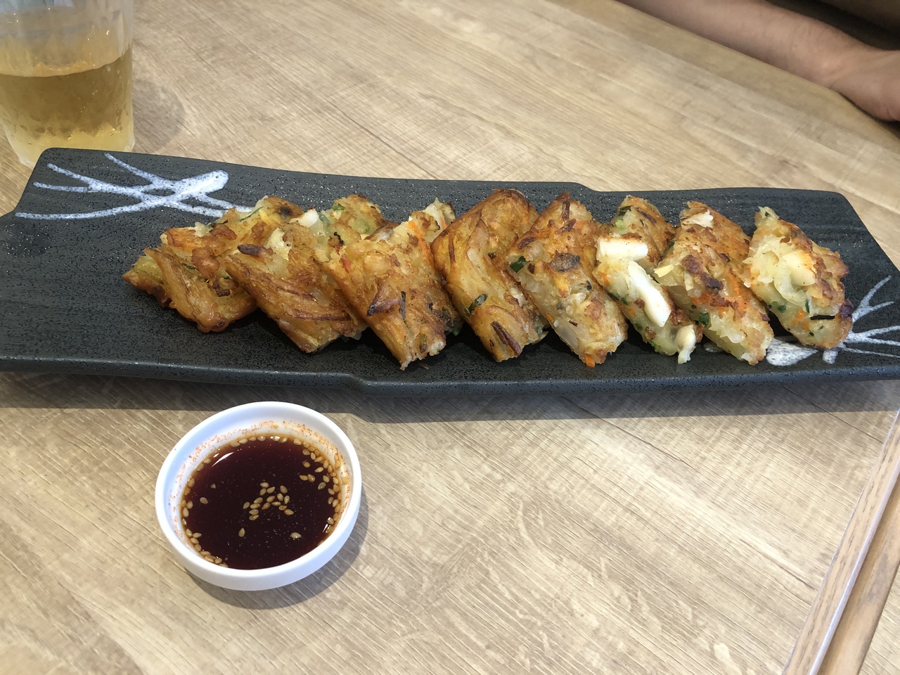 チヂミはあっ、見るからに油っぽそうと思ったが、見た目とは違いカリッとしていて美味しかった。