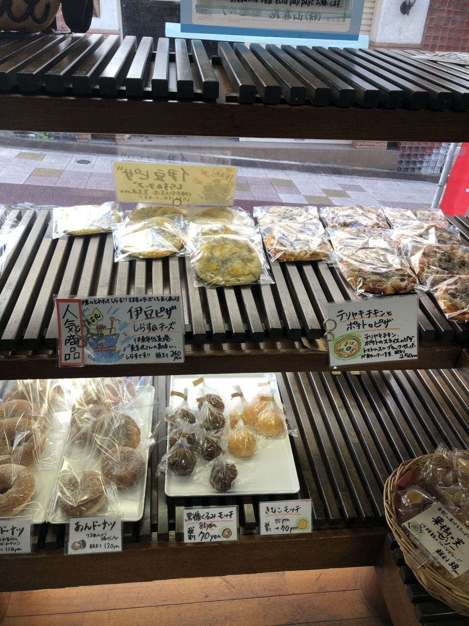 ディスプレイでちょっときもかわなアマビエやトトロ?が目を惹きました。そして「しらすチーズピザパン」のポップが。これが決め手で入店。
