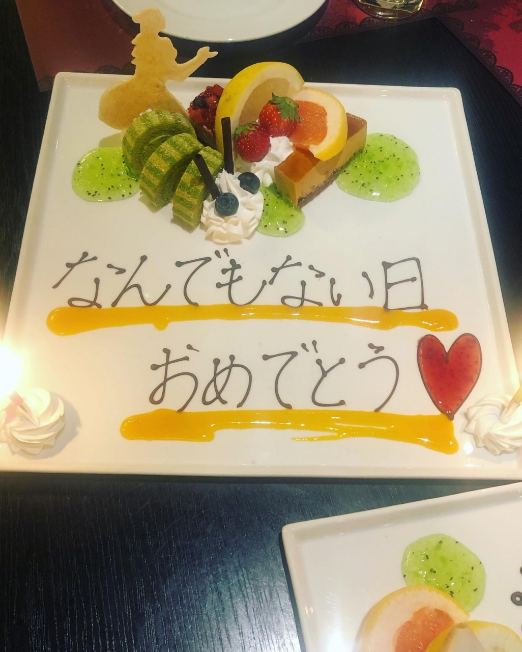 食後は…予約時の誕生日選択で花火&ロウソク付きチョコサンデーが登場!