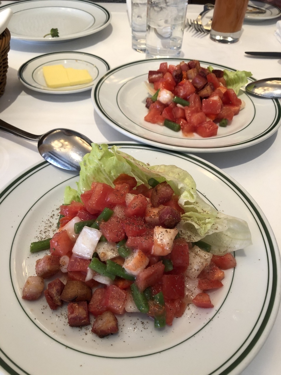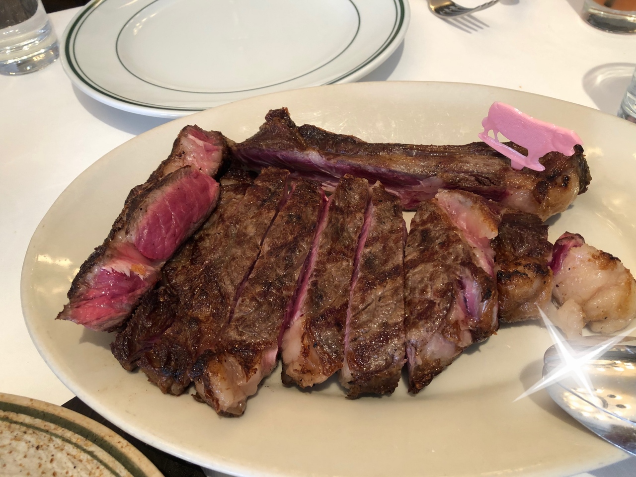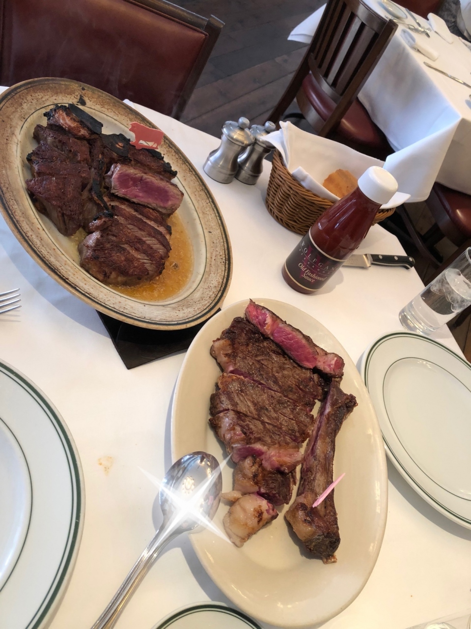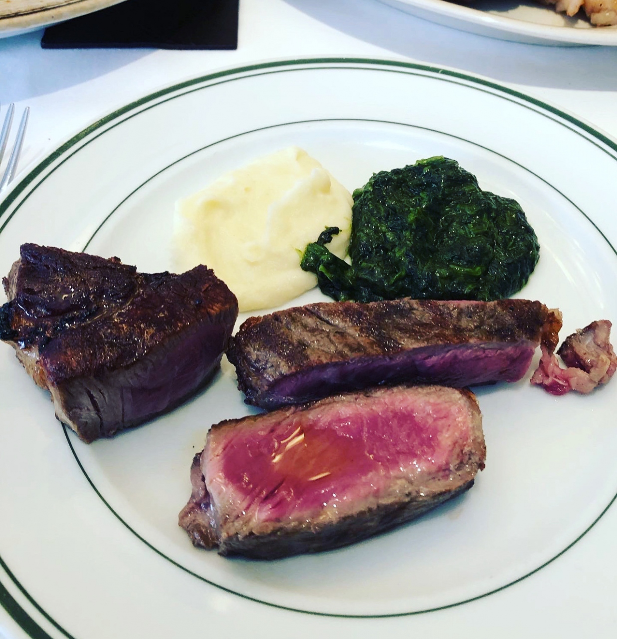 (ウルフギャングサラダ・本日のスープ・プライムグレード熟成T ボーンステーキ・マッシュポテトとクリームスピナッチ・パン)