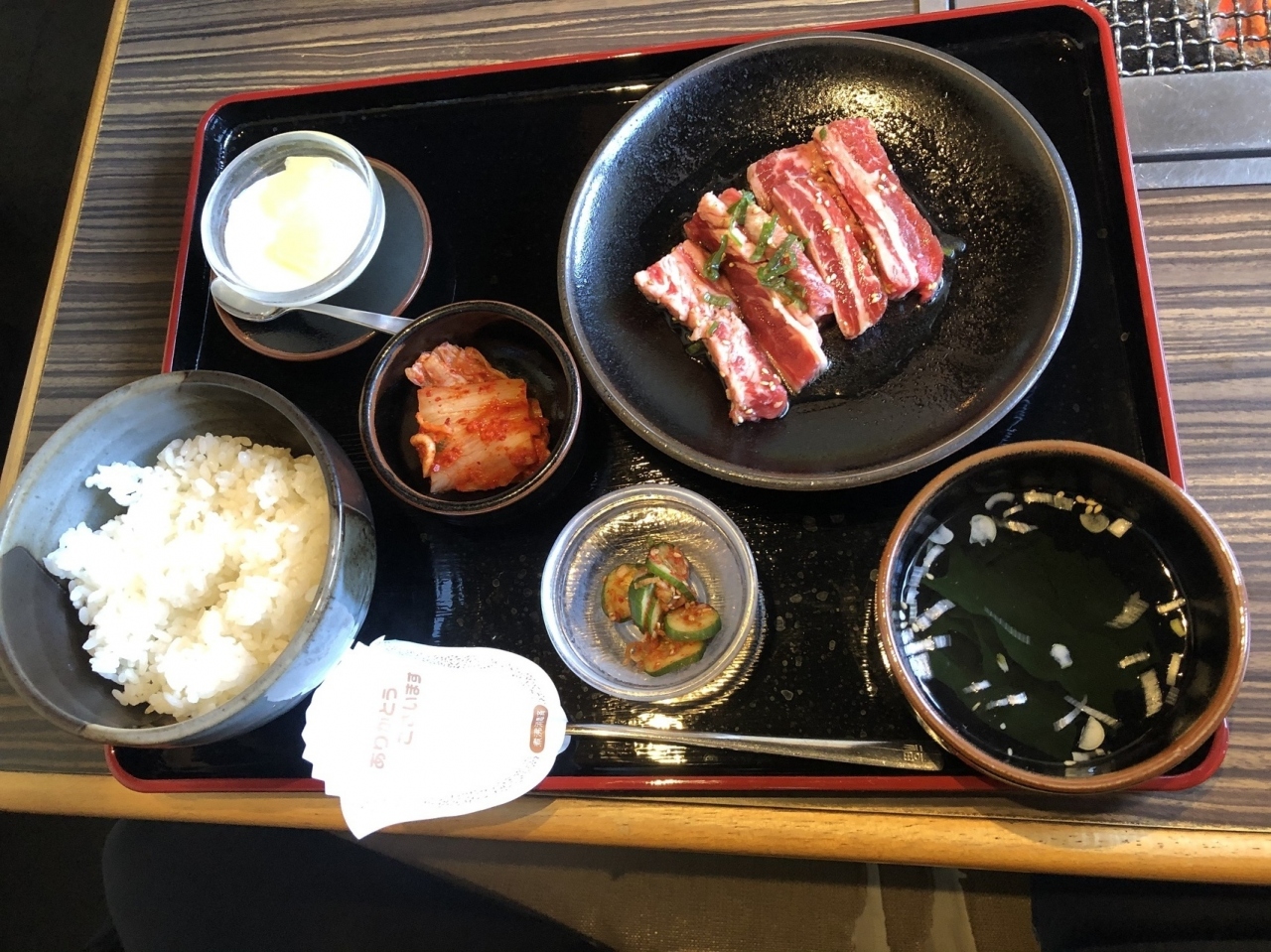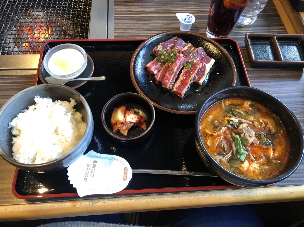 ライス・ユッケジャンスープ・中落ちカルビ・牛ハラミ・キムチ・ドリンク・杏仁豆腐付き