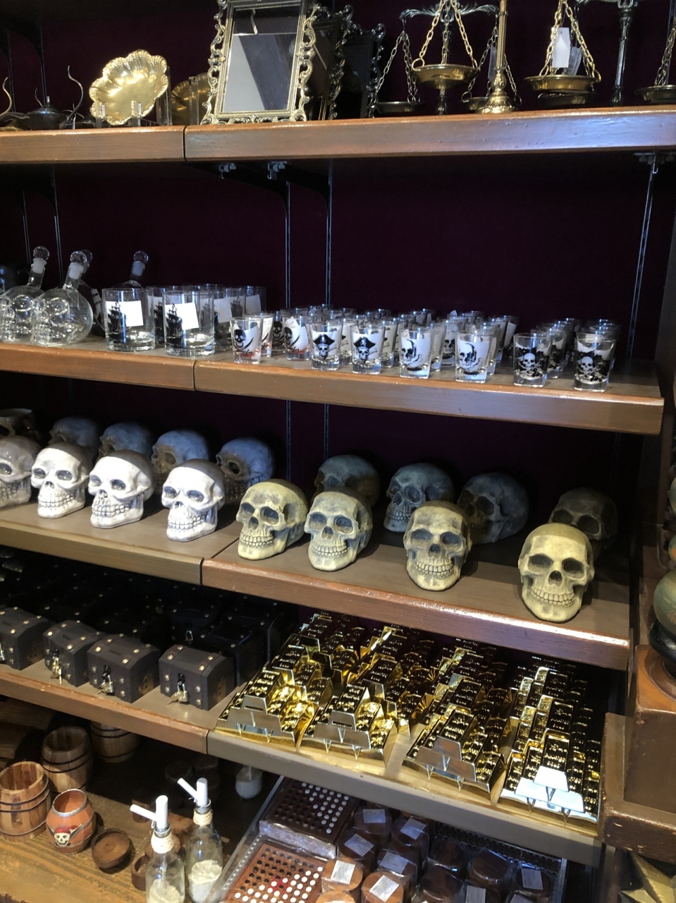 海賊小物グッズや子どもが喜びそうな剣のおもちゃや海賊帽子などあり。