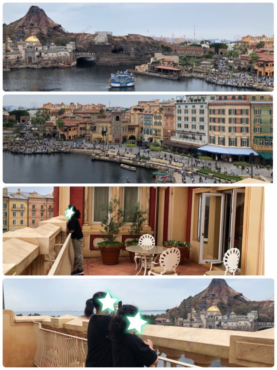 翌朝は新郎新婦が宿泊した、たったの5室しかないレアな、予約がなかなか取れないことで有名な通称「ハバテラ」(ハーバービューテラス付きルーム)にお邪魔して広いひろーいテラスからショーを鑑賞。