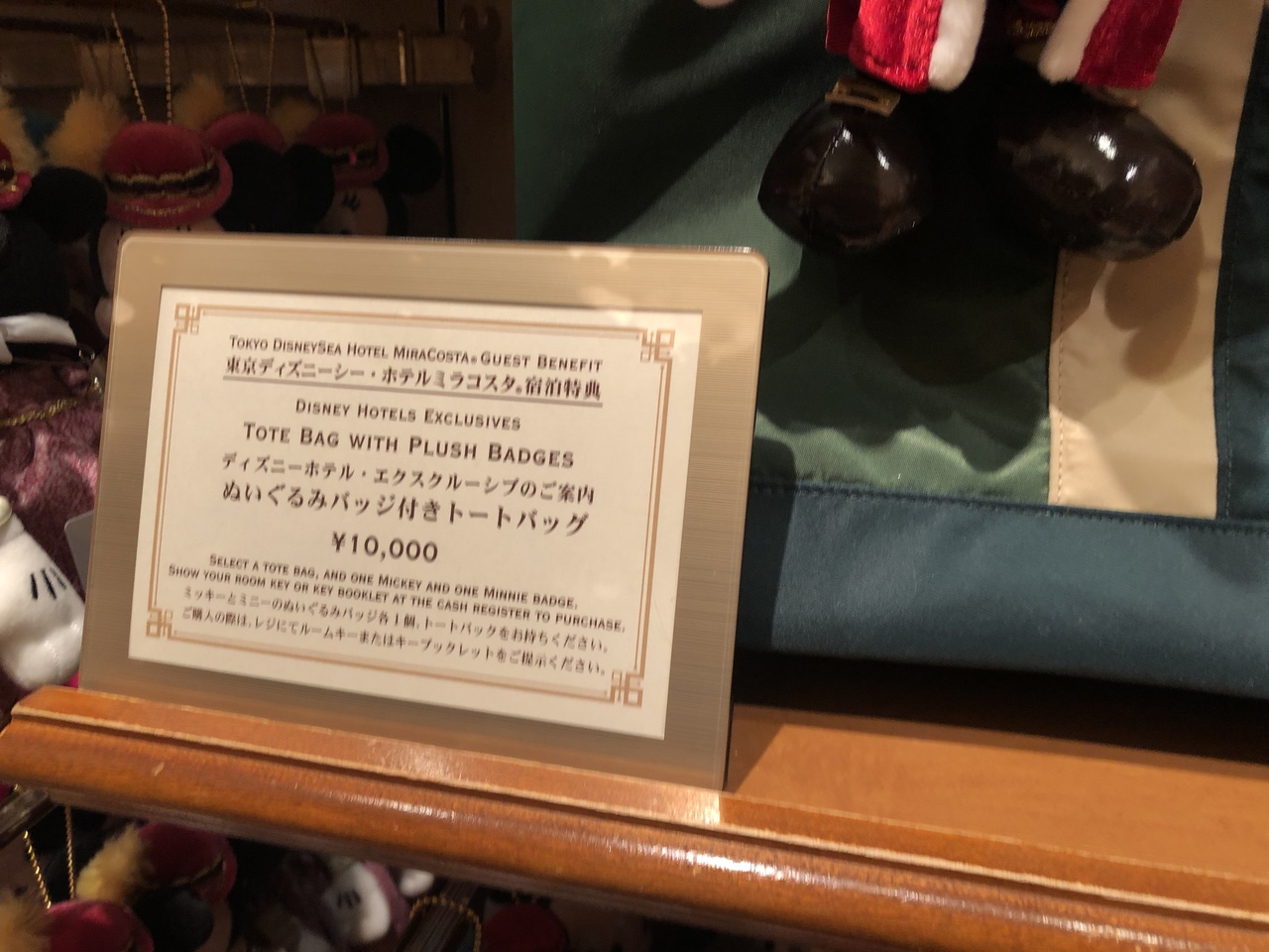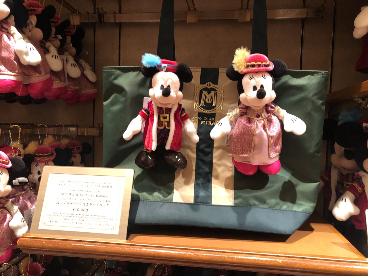 ミラコスタ限定お菓子やボールペン、タオル、トートバッグ、ネームホルダーなどあり。