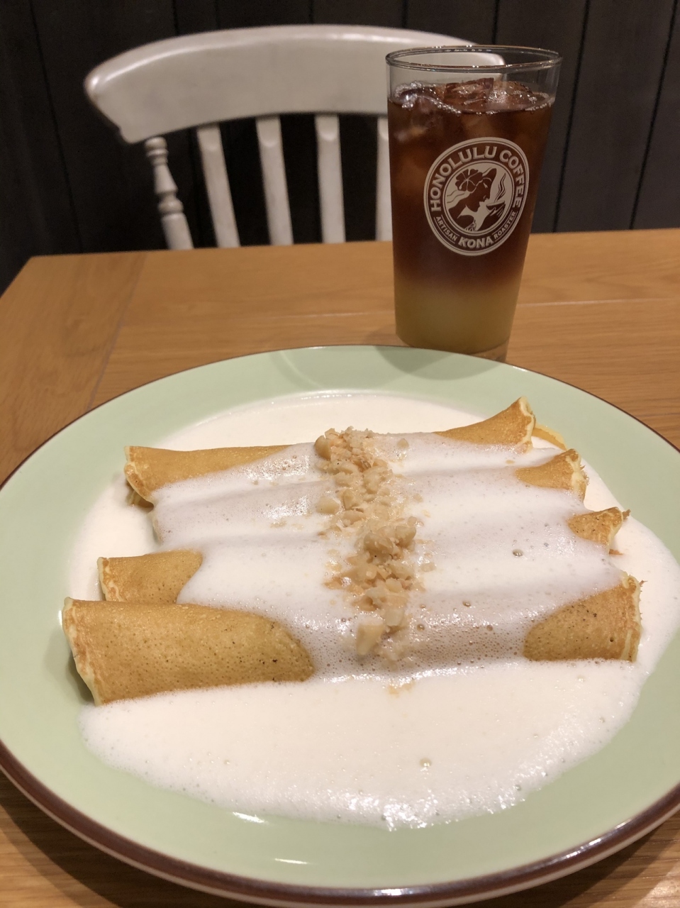 もちっとしたロールされたパンケーキにた~っぷりのマカデミアンナッツソース