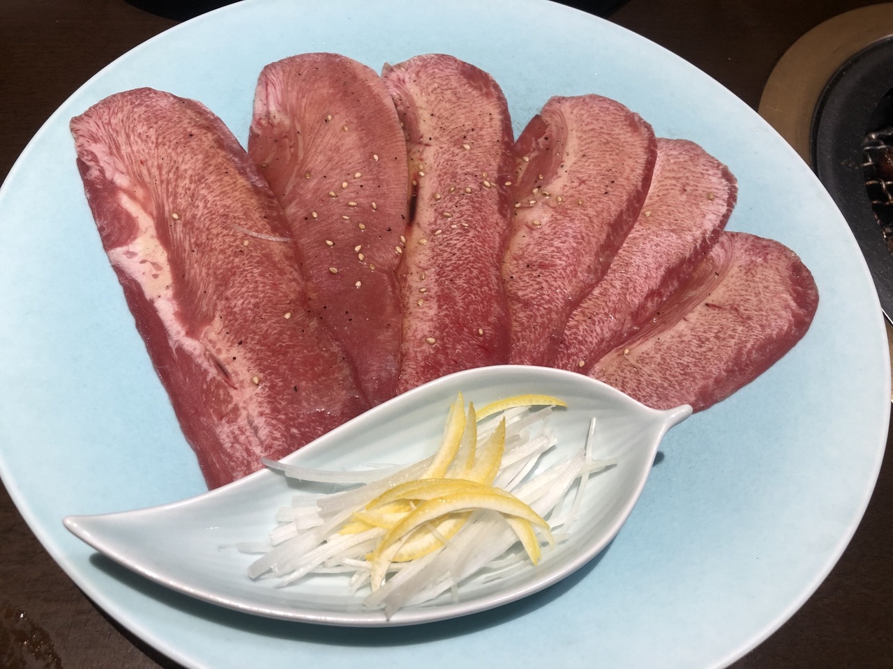タンしゃぶはネギとレモンのスライスを巻いて食べた。こちらは厚切りのタンより好きだった。