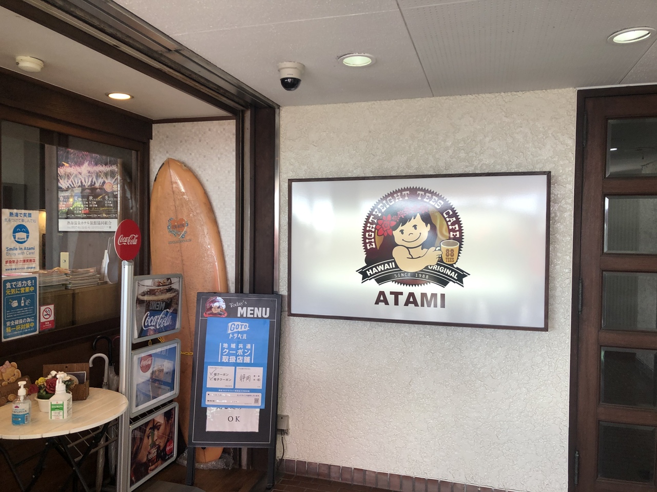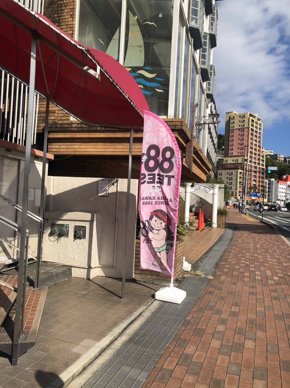 伊東温泉へ向かう途中に通った熱海のビーチ沿いで偶然見つけた88teescafe!