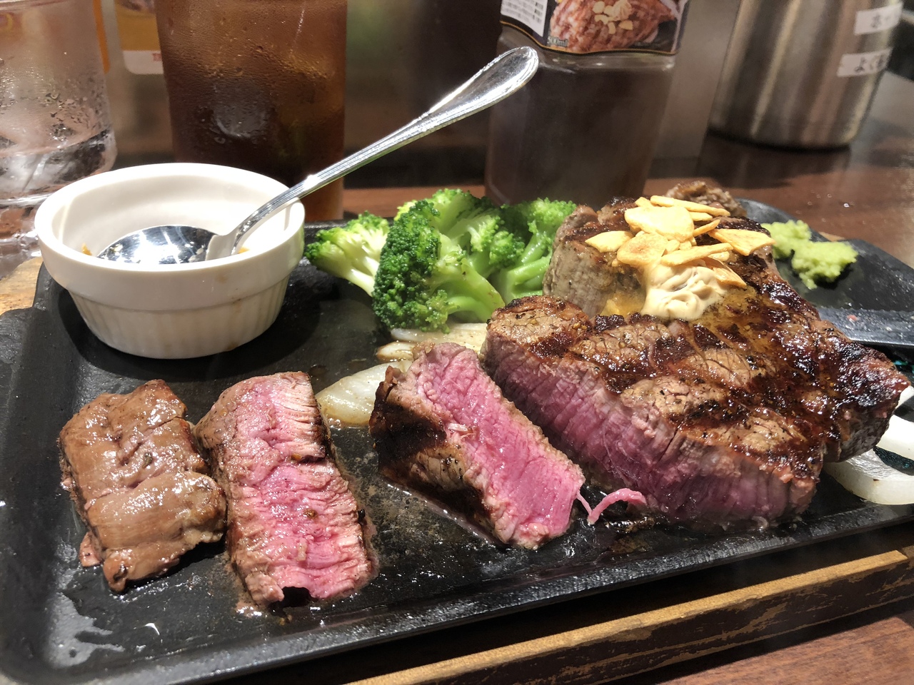 私はヒレステーキ(付け合わせをブロッコリーに変更)に¥500で150gハンバーグをトッピングし、ハンバーグは娘へ。