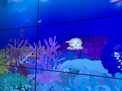 ソフトドリンク無料のウエルカムドリンクや、大きなモニターに自分の描いた絵を映し出せたり、その絵をフロントで缶バッチにしてもらえたりと子どもに嬉しい演出あり。