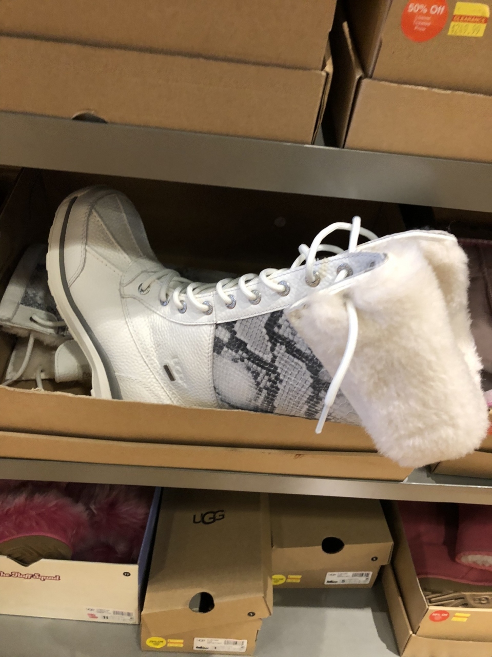 ブーツの割引商品は黒や茶色がが多く、ふくらはぎの途中までの長さのブーツがほとんどでした。