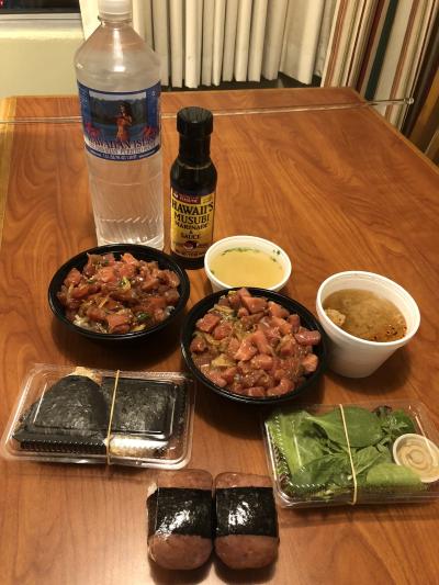 スパムおにぎり・日本米のおにぎり各種にポケ丼 味噌汁も嬉しい