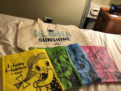 トイ・ストーリー柄のリュックは$29で長女がお小遣いで購入したが、次の日使用したらファスナーがかんでいてうまく締まらないため、レシート持参で交換。- 旅行時期