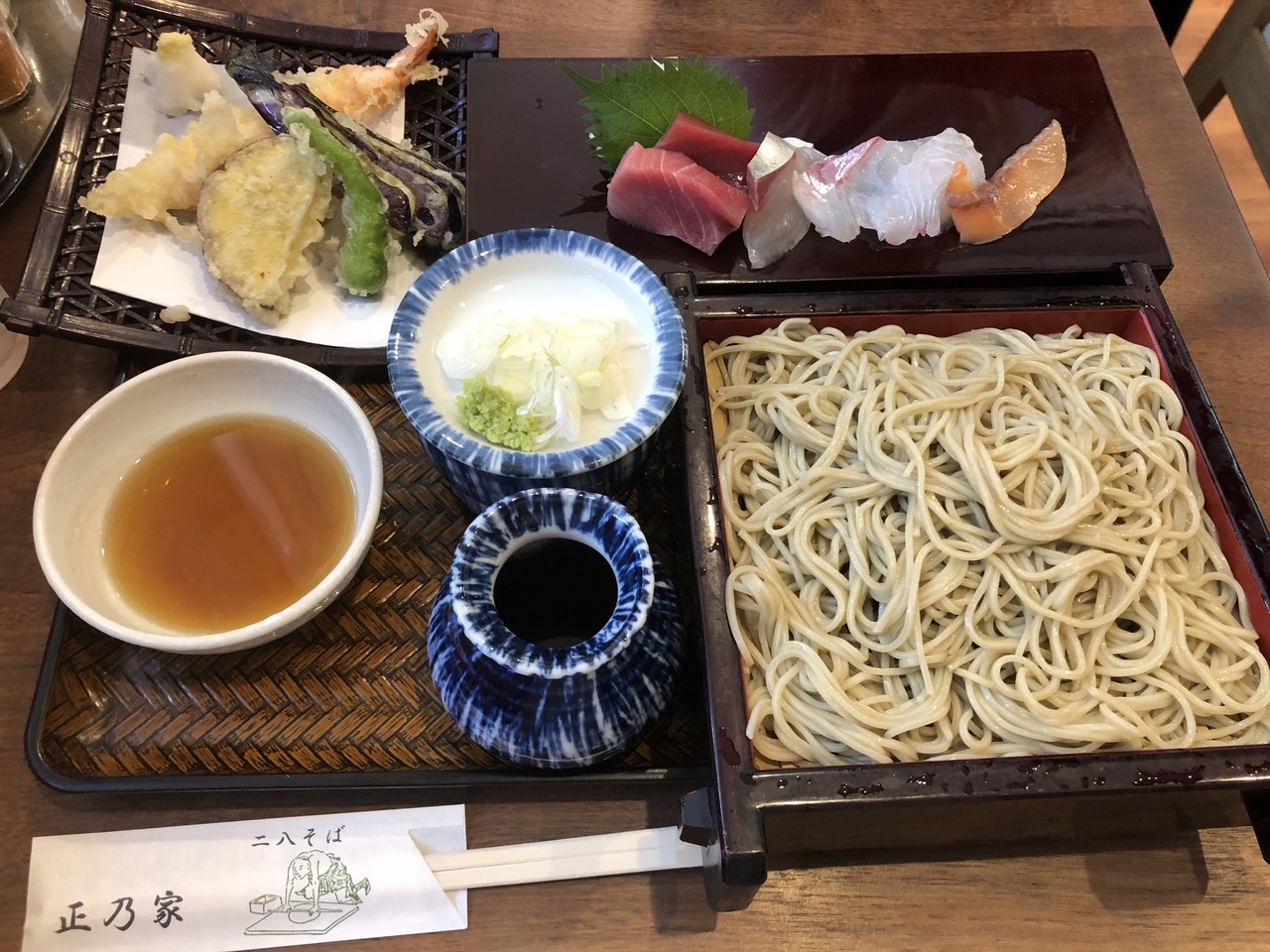 暑い日の利用だった為、お蕎麦屋さんには長い列が出来ていました。