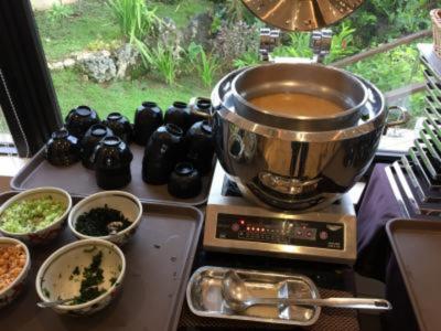 朝食は味噌汁やおにぎりあり。- 旅行時期