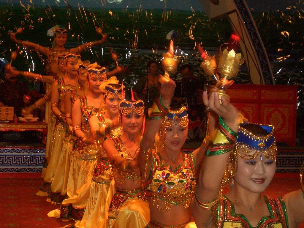 どこでモンゴル料理をとろうとも、最大の娯楽は、このようなモンゴル舞踊だと思います。30名ほどの楽団ですが、個人予約をすれば、10万円掛かってしまうとは思いますが。もし少人数ならば、「歌姫」と呼ばれていますが、2人でモンゴルの曲を歌ってくれます。これならば1万円くらいで予約できると思います。- 旅行時期