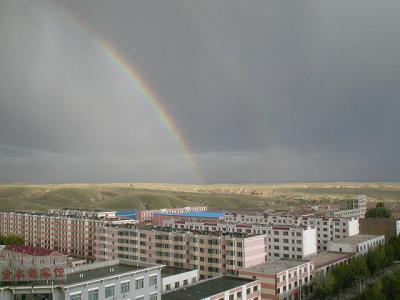 オルドス(鄂尓多斯)空港の北、30Kmにオルドス市があります。オルドス高原の真ん中に有る都市です。私の住んでいたホテルの部屋から見た、オルドス高原の写真を添付します。