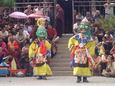モンゴル族の人々が信仰しており、運が良ければ、写真のようなお祭りを見られるかもしれませんよ。和尚さんたちがゆったりと踊るのです。- 旅行時期