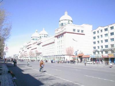 この写真は、世界一のオルドスカシミヤ集団のニット工場です。集団に属する企業のショップが30軒くらい、この建物の1階に軒を並べています。地元の人々が利用する店です。掘り出し物はここで探すのが得策だと思いますよ。場所は町の南部に有り、「オルドス集団」へ行きたいと言えば、この奇抜な建物が容易に見つかります。
