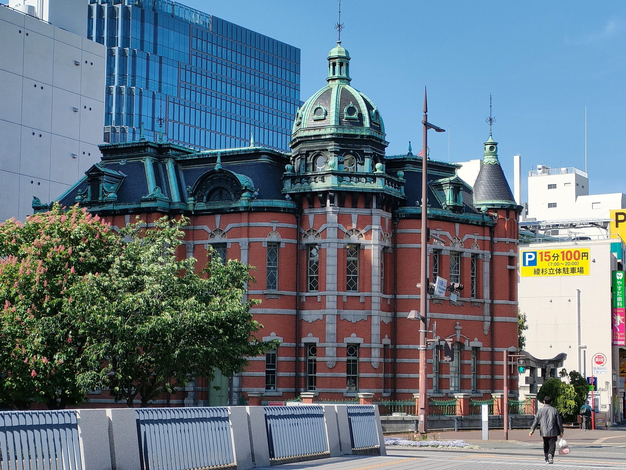 比較してしまうのは失礼ですが、装飾の見事な旧横浜正金銀行本店に比べるとぱっと見シンプルな造りのように見えますが、よく見るとタイル張りであったり、建物上部や玄関部などの装飾がキラリ。さすが昭和初期築ですね。- 旅行時期