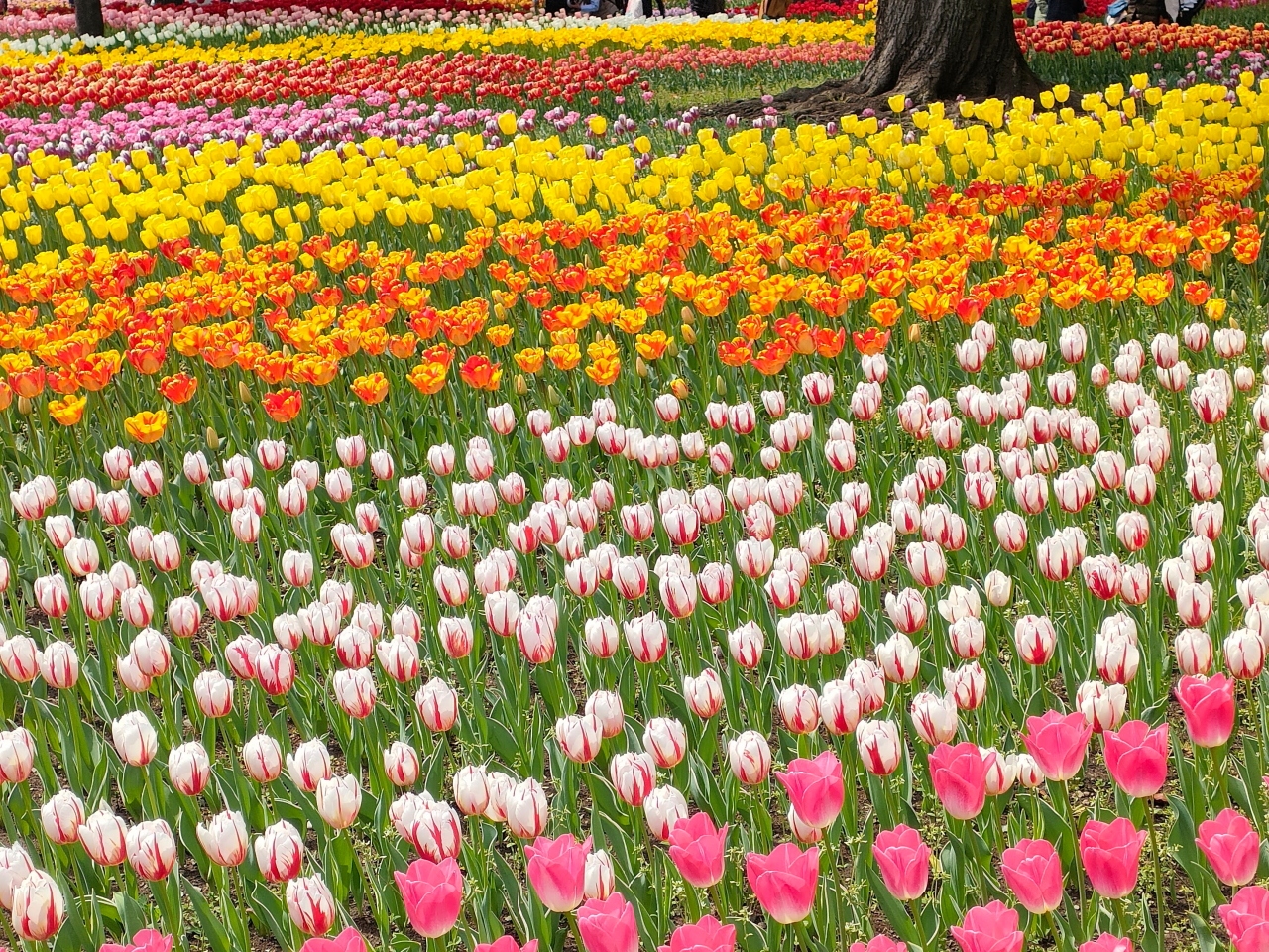 毎年、春になると横浜公園の花壇にはたくさんのチューリップが、色とりどりの美しい花を咲かせ、見る人を魅了させています。