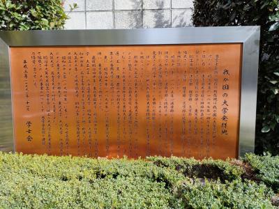 それを記念して、学士会館前に石碑と案内板が設置されています。