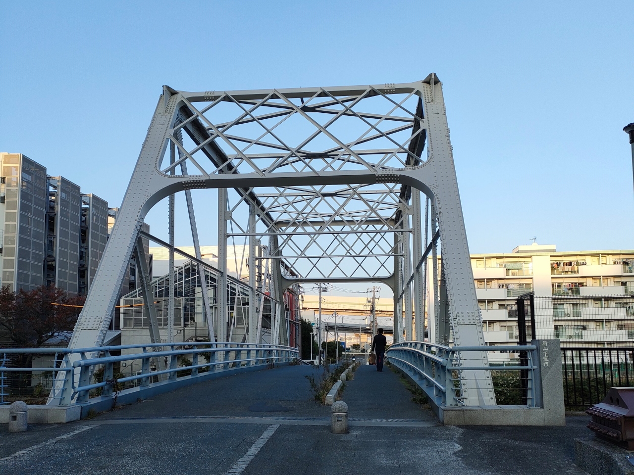 東京、川崎、横浜と移設され、さらに明治時代の鉄道橋を改修しつつ現在も活用しているということで、歴史的にも価値のあるトラス橋です。