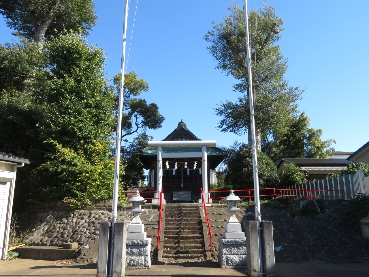 鳩川沿いの住宅地の中にある神社ですが、川沿いから少し階段を登った高いところに位置しており、万が一の川の氾濫時の浸水を防ぐ目的でしょうか。
