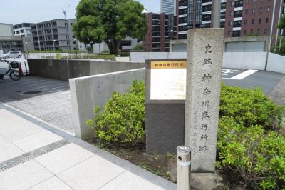 紅葉坂を上ったところに神奈川県立図書館ほか複数の県立の公共施設がありますが、その入り口部に、「神奈川奉行所跡」と書かれた石碑と案内板が立っています。