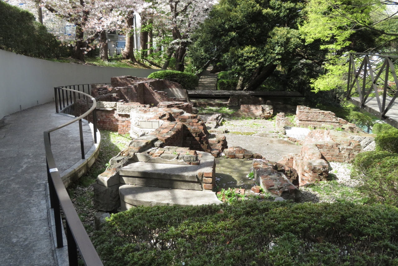 また、蔵の前には、岩崎邸三菱社の擁壁の煉瓦を再利用して造られたものと神田淡路町2丁目にあった松山堂の蔵の部材を再利用して復元したものがそれぞれあるので、セットで見ることができます。