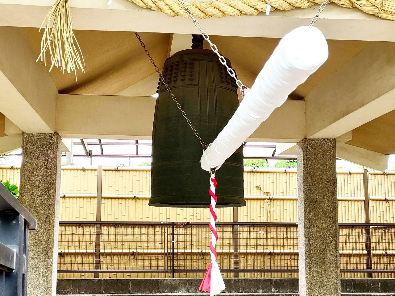 神社の多くは、鐘楼は高いところに位置している気がしますが、ここの鐘楼はなぜか逆に下がったところに位置しているため、梵鐘を真横にみるような形になり、割と見学は容易にできると思います。- 旅行時期