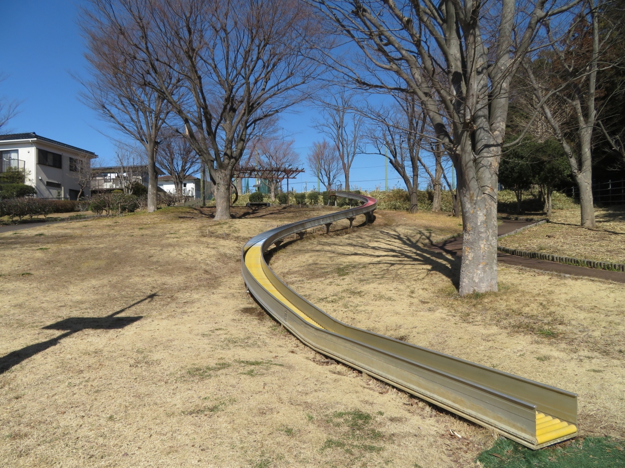 昔は斜面になっている広々とした原っぱだった記憶がありますが、現在はローラーすべり台があり、また公園内に巨木が生い茂るなど、だいぶ様変わりした印象です。- 旅行時期