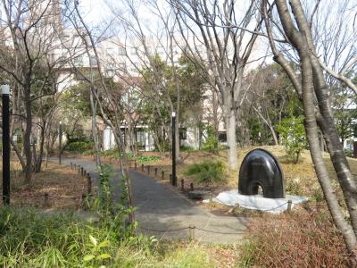 聖路加国際病院敷地内に、こちらの石碑が建てられています。石碑というより、モニュメントと呼んだ方が適切な、ドーナツを半分に切ったような形をしています。