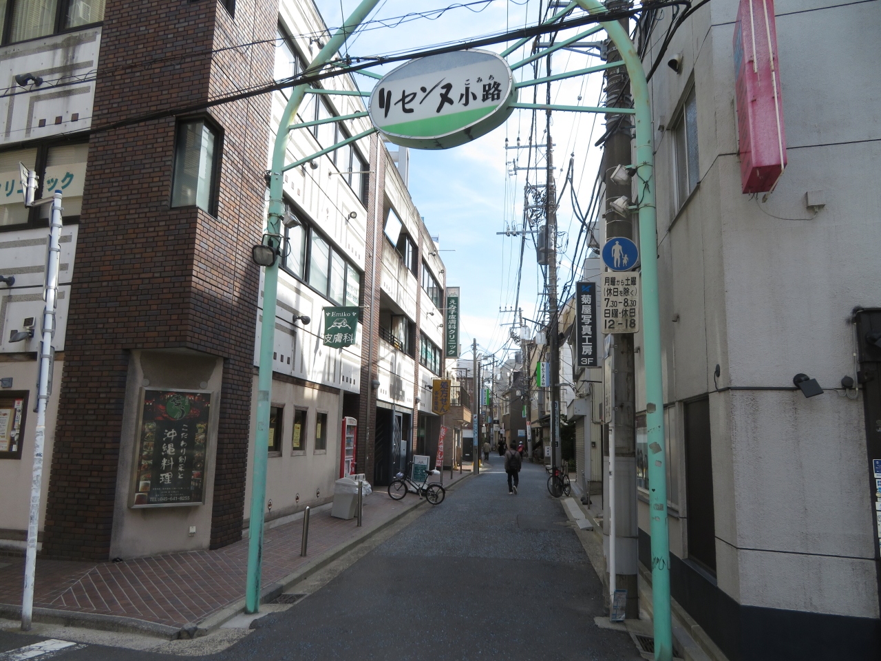 石川町駅の元町口の南側の小さな改札を出て、東方面に進むと、ストリートの上部に「リセンヌ小路」と書かれたアーチがかけられています。