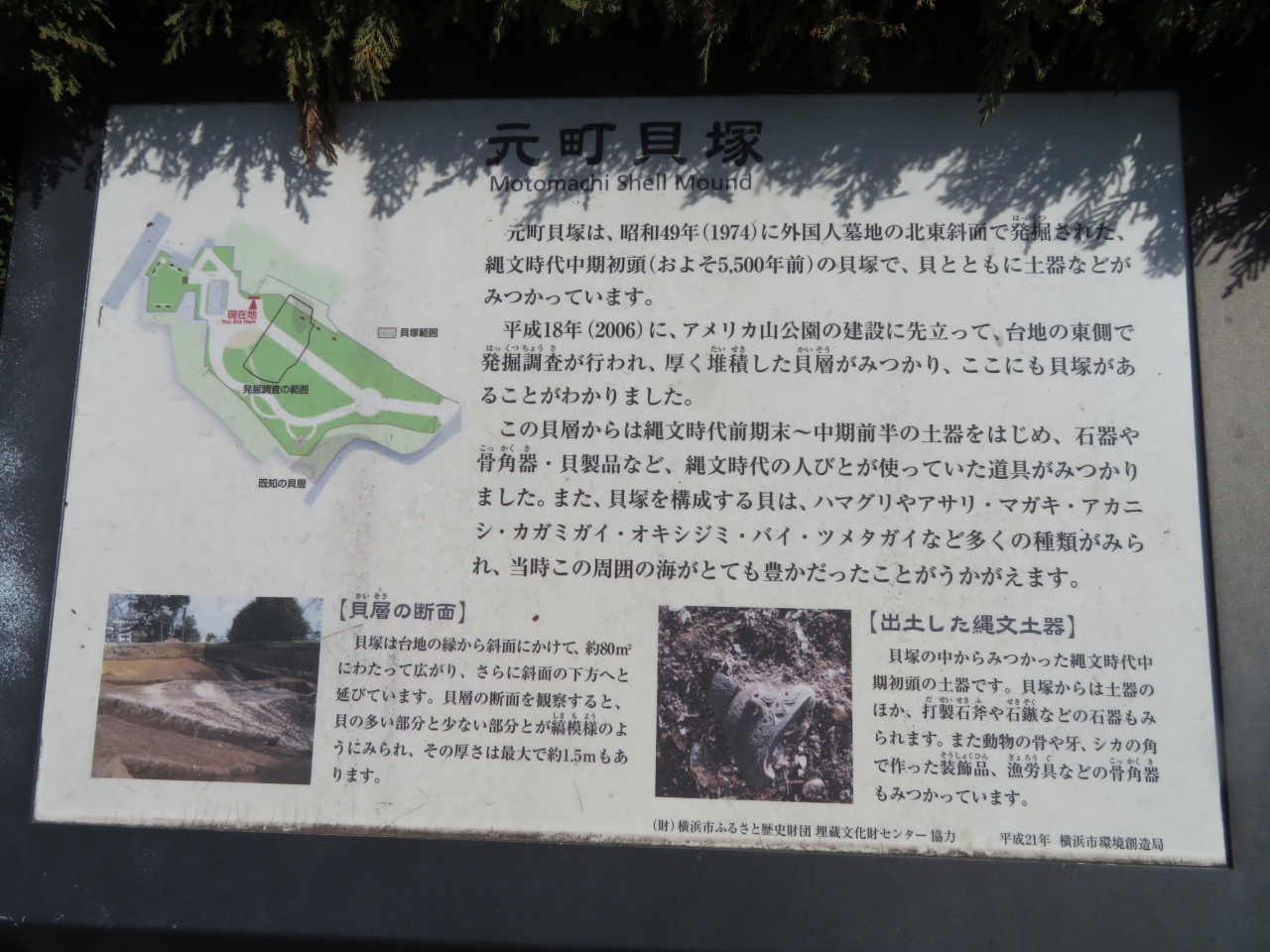 元町貝塚は、アメリカ山公園整備に先駆けて行われた発掘調査にて見つかった貝塚です。