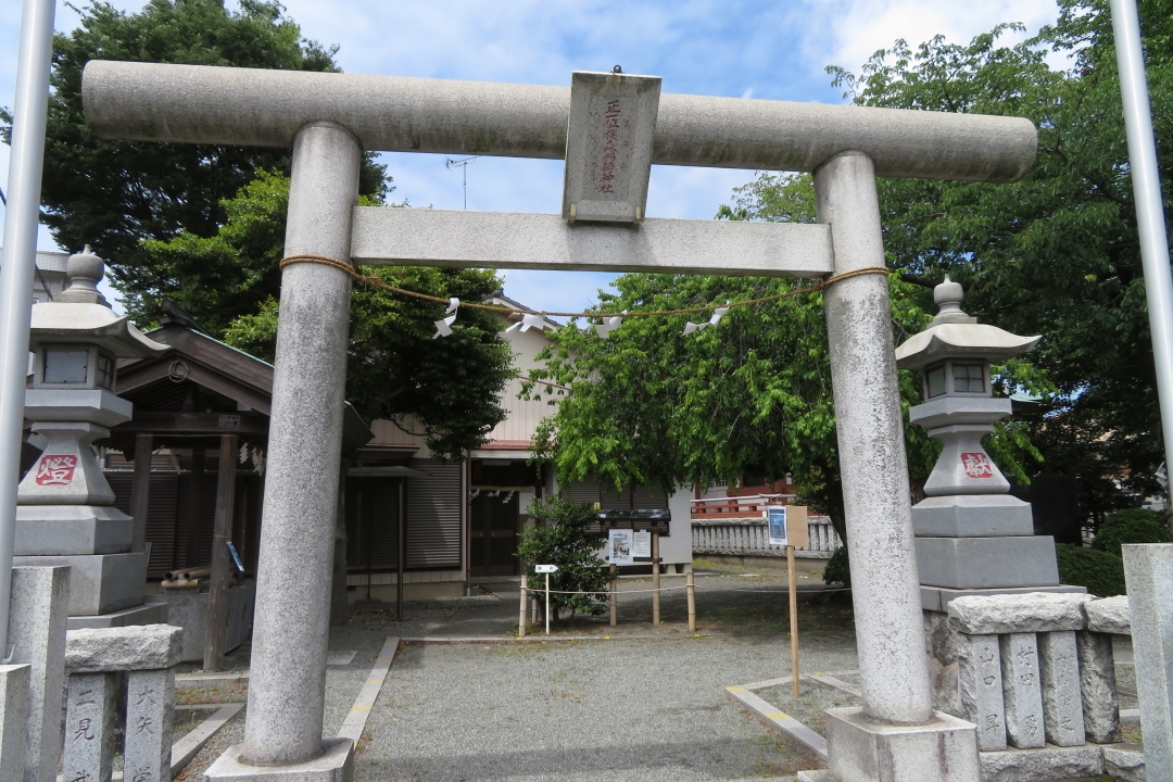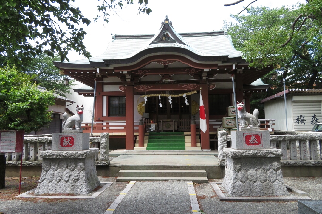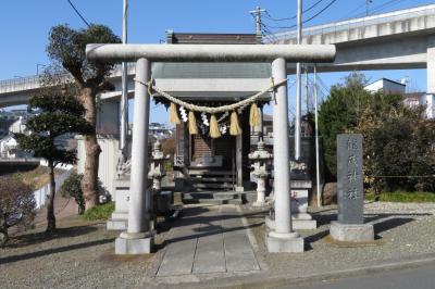 巡礼坂と名付けられた坂を下ると、目久尻川にぶつかります。目久尻川にかかる橋横に、この神社があります。