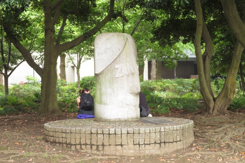 山下公園の一角に巨大なモアイ像のようなものが設置されています。目に該当する箇所に「ZANGIRI」と刻まれており、髪の毛も表現されています。碑と呼んでよいかですが、これが西洋理髪発祥の地碑というものです。