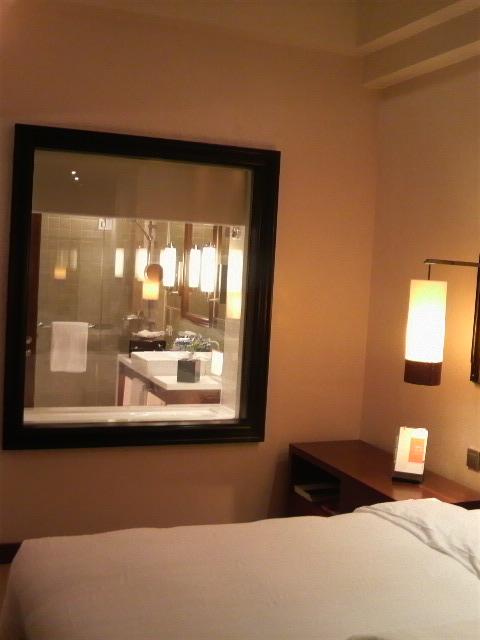 ここの面白いのは、写真のように、部屋からお風呂が見えます(見せたくなければカーテン閉めればいいんですが)。、こういうものって、この類のホテルで必要なの?疑問に思ってしまうのは私だけでしょうか。