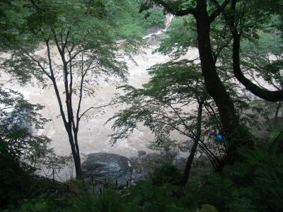 行ったときは大雨で、当然露天風呂には入れず。まこれも写真を見ればわかるとおり仕方ありませんが。人間も大雨で流されてしまいますので。ダムからの放流が通常2tのところ、300t以上だったとか。。。通常の川の位置から4m近く水位が上がってますし。