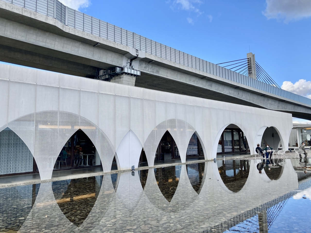 頂いたのはフラットホワイト。ヨーロッパではお馴染みで、エスプレッソにミルクを合わせたドリンクです。エスプレッソ、スチームミルク、フォームミルクの三層なのですが、