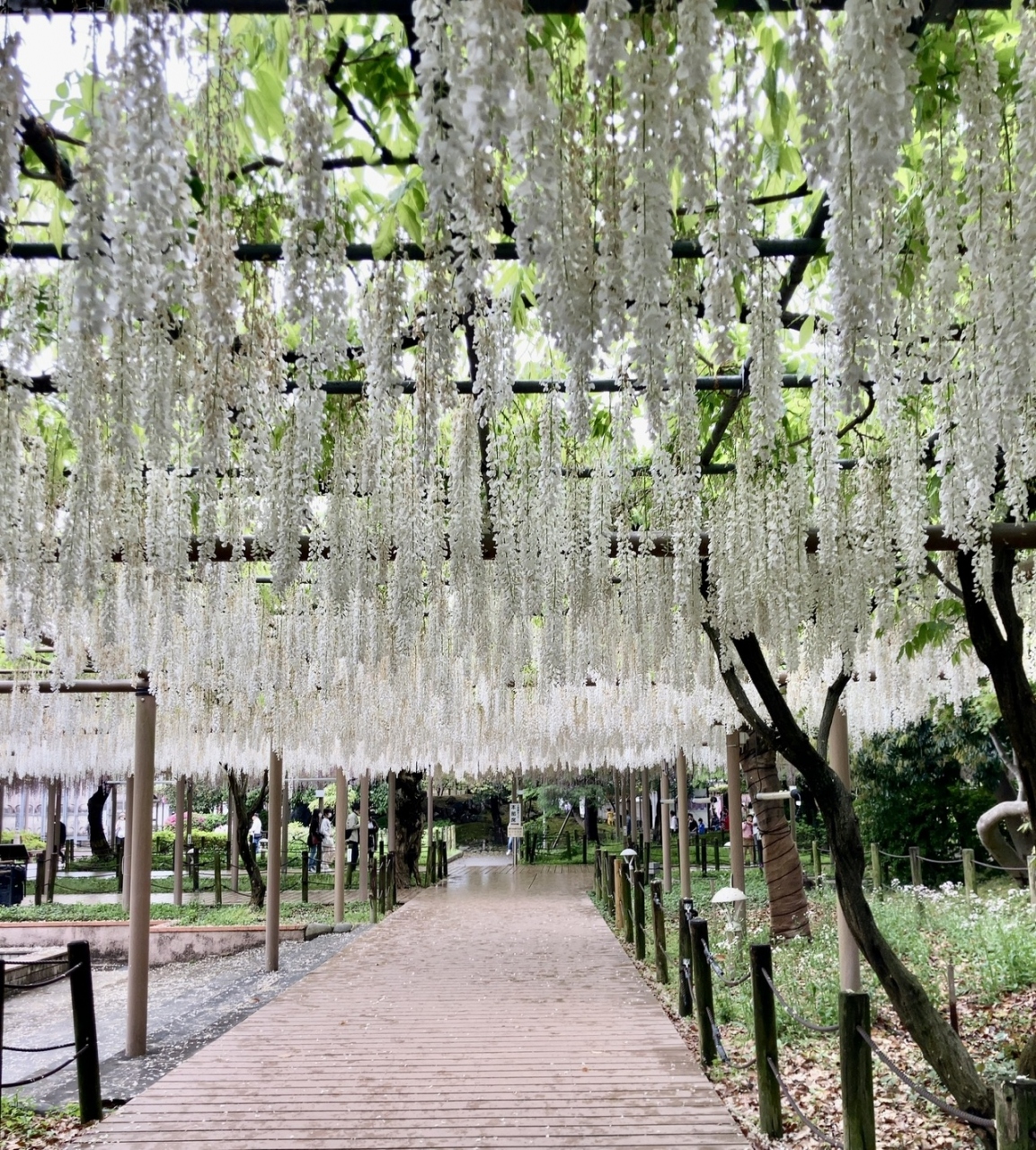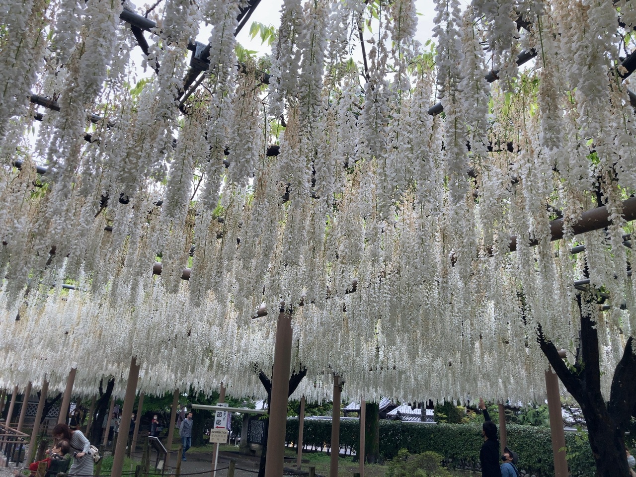 例年より早く見頃を迎え藤色の藤は間に合わず、遅咲きの白の藤は綺麗でした