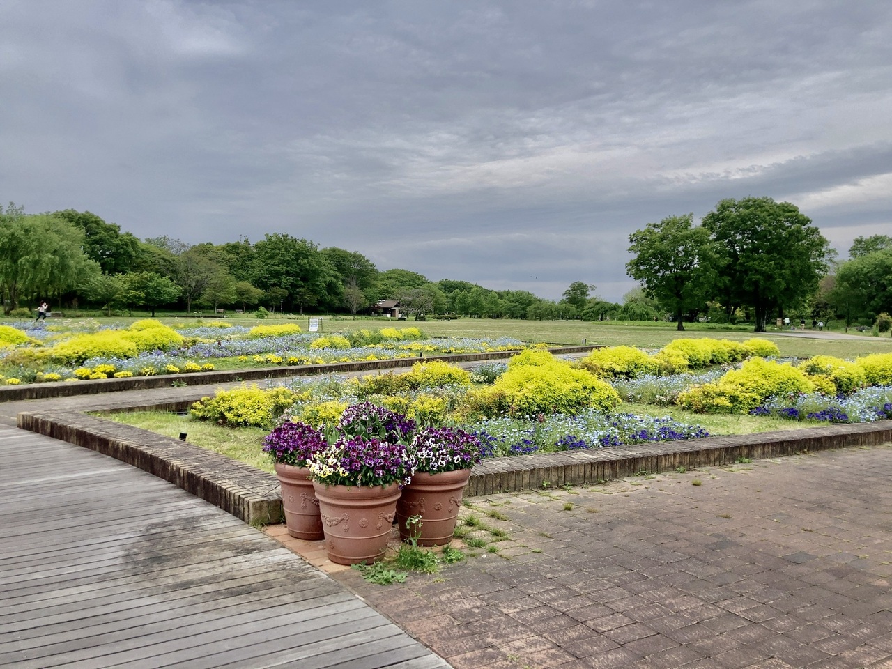 中は広くて明るい感じで窓際の席からはお花も見えます。
