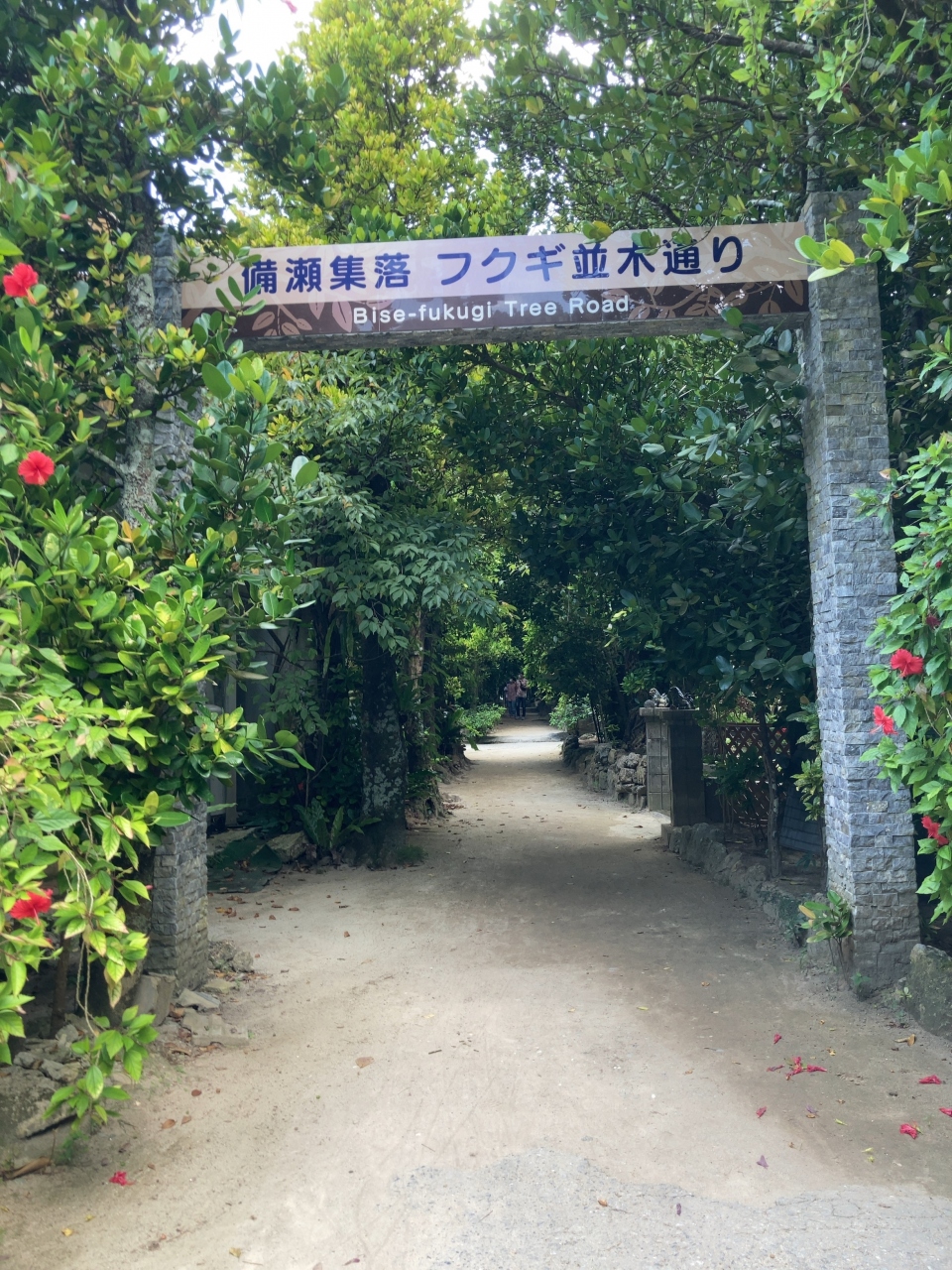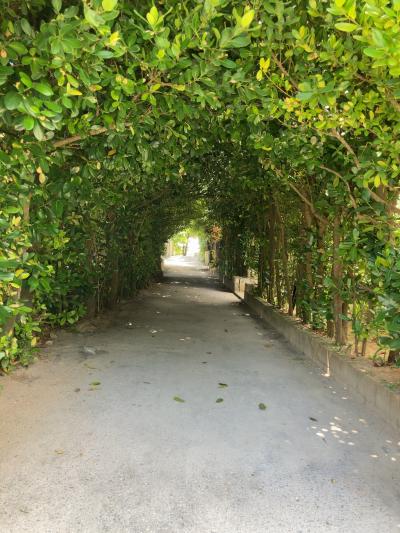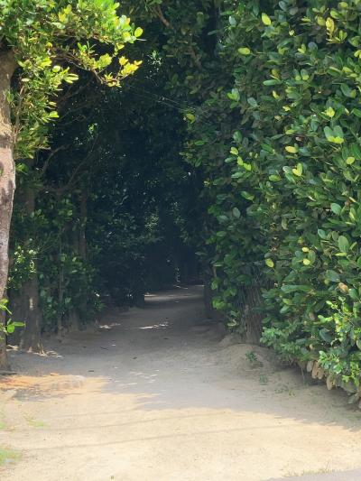 フクギの木のトンネルを抜けると海。とてものんびりとした風景に癒されました。