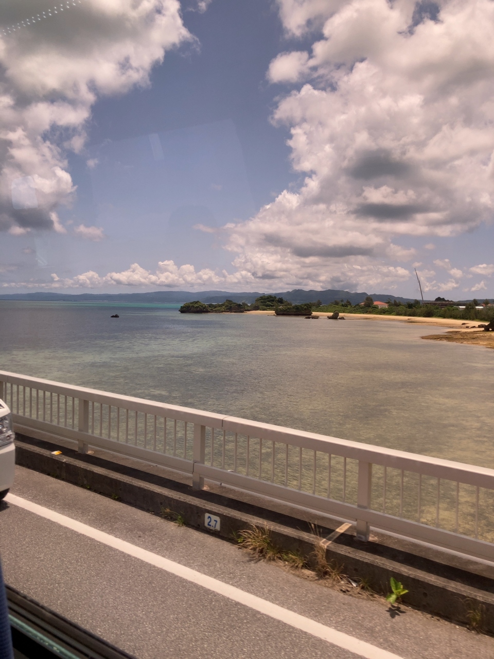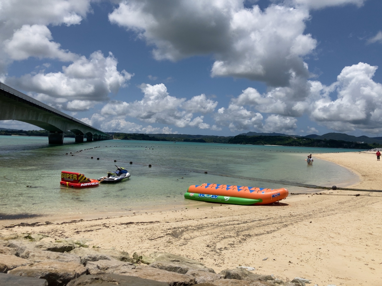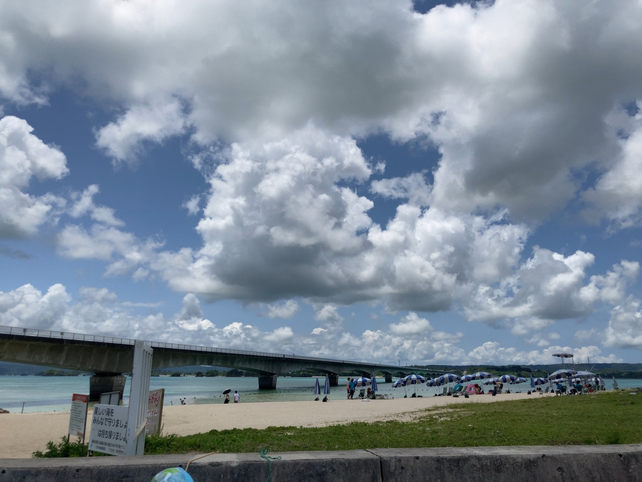 今帰仁村の古宇利島と名護市の屋我地島を結ぶ1960メートルの橋。両側にエメラルドグリーンの海が広がりそれはそれは綺麗です