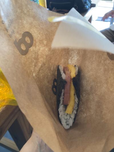 沖縄ならでのおにぎり。スパムはあまり好きではないですが、このおにぎりは食べられます。