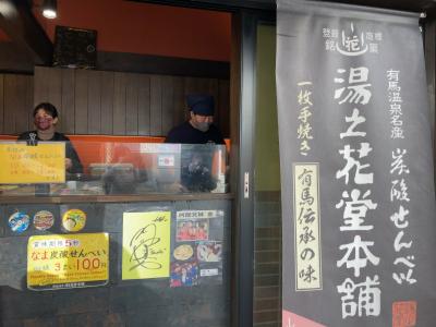有馬温泉は昔から炭酸せんべいが有名です。明治の頃有馬温泉に湧き出る炭酸泉をお煎餅つくりに使用したのがはじまりとか