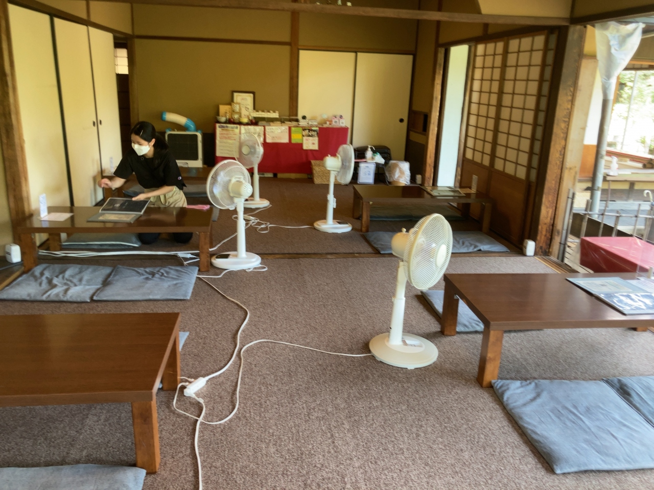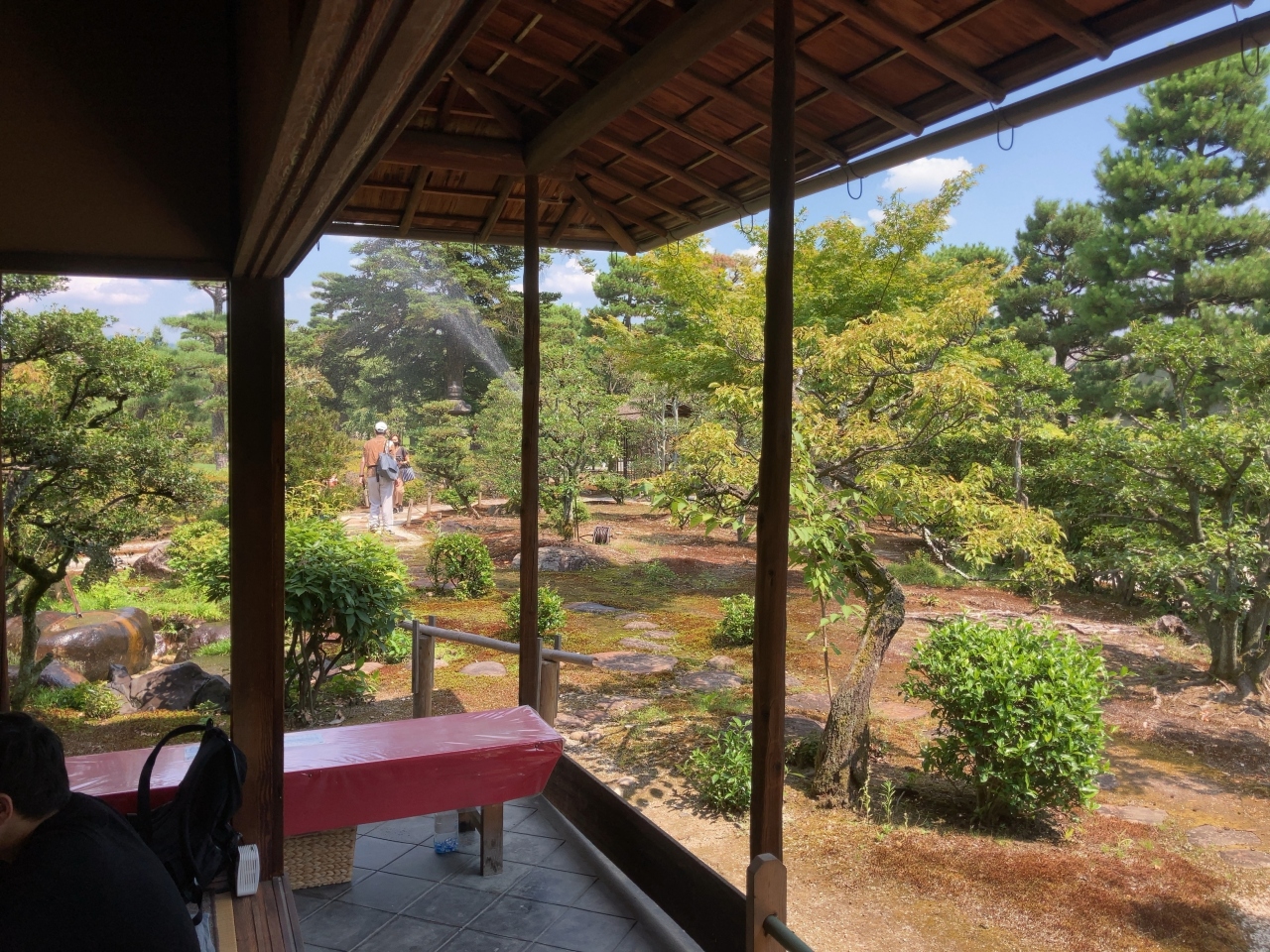 目の前には清流園という和風庭園と芝生の洋風庭園があり、庭園を眺めながら休憩できます。暑かったのでかき氷を頂きましたが、お水は言わないと頂けず、その時はコップの先を持って渡されたので、少し不衛生な気がしました。- 旅行時期