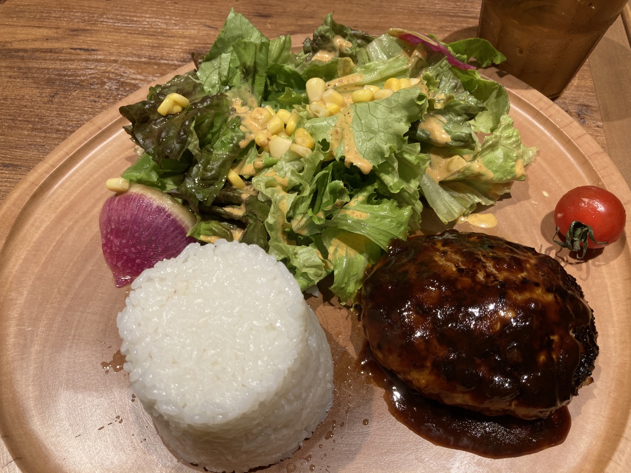 サラダバーやポテト付きのハンバーグや、ハンバーガーなどもありますが、今回はこのワンプレートランチ!1000円だったかな